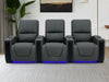 The Assisi 3-Seater redefines the social experience by giving everyone in the room their own "Command Station." Each reclining seat operates independently and puts high-tech tools at every armrest: