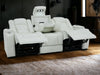 3 Seater Real Leather Electric Recliner Sofa with Fold-Down Table, Massage, USB, Storage & Cupholders | White Genuine Leather | Napoli