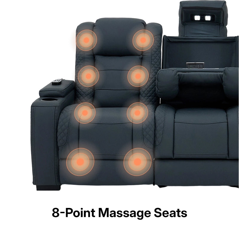 Napoli 2 Seater Cinema Sofa – With console, wireless charging, and cupholders