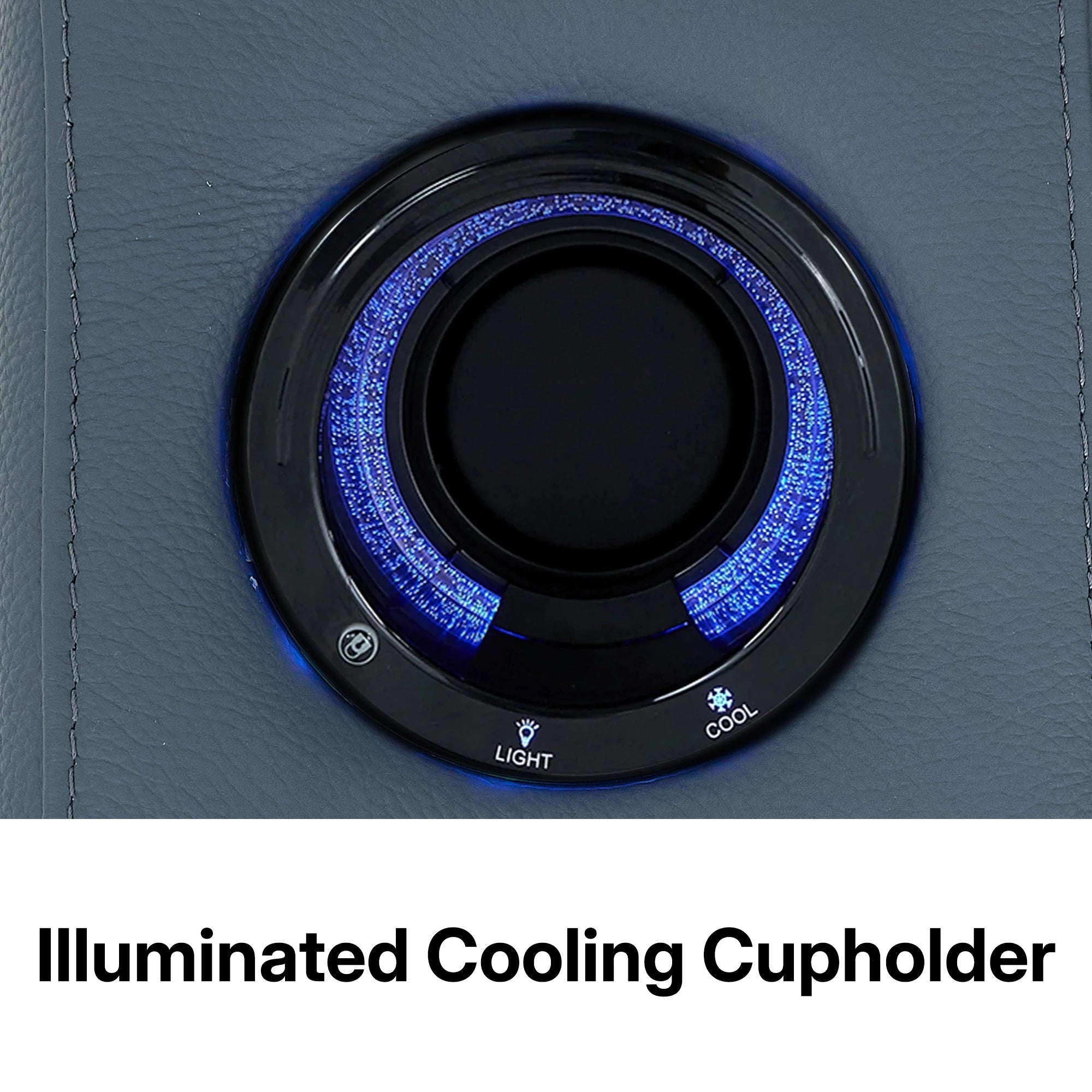 This model features 2 cup holders: one with a sophisticated LED glow and one standard plastic holder.